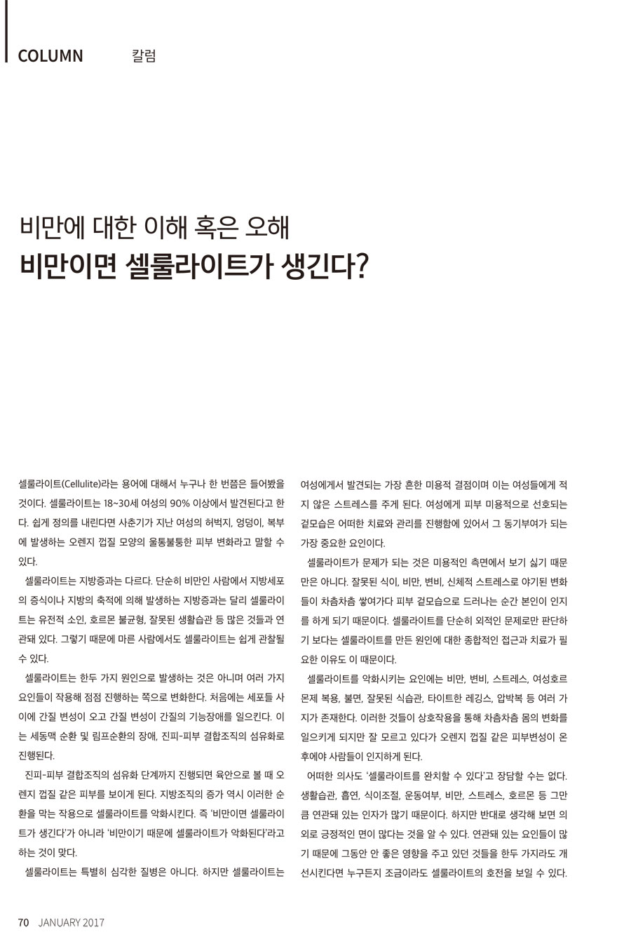 [매거진] [헬스앤라이프/비만에 대한 이해 혹은 오해] 비만이면 셀룰라이트가 생긴다?
