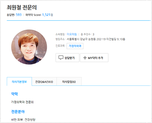 무려 600개에 육박하는 하이닥 답변을 자랑하는 최원장님 !!