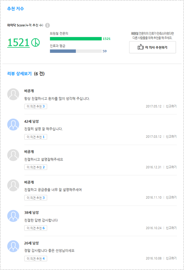 하이닥 스코어와 추천 리뷰들을 통해서도