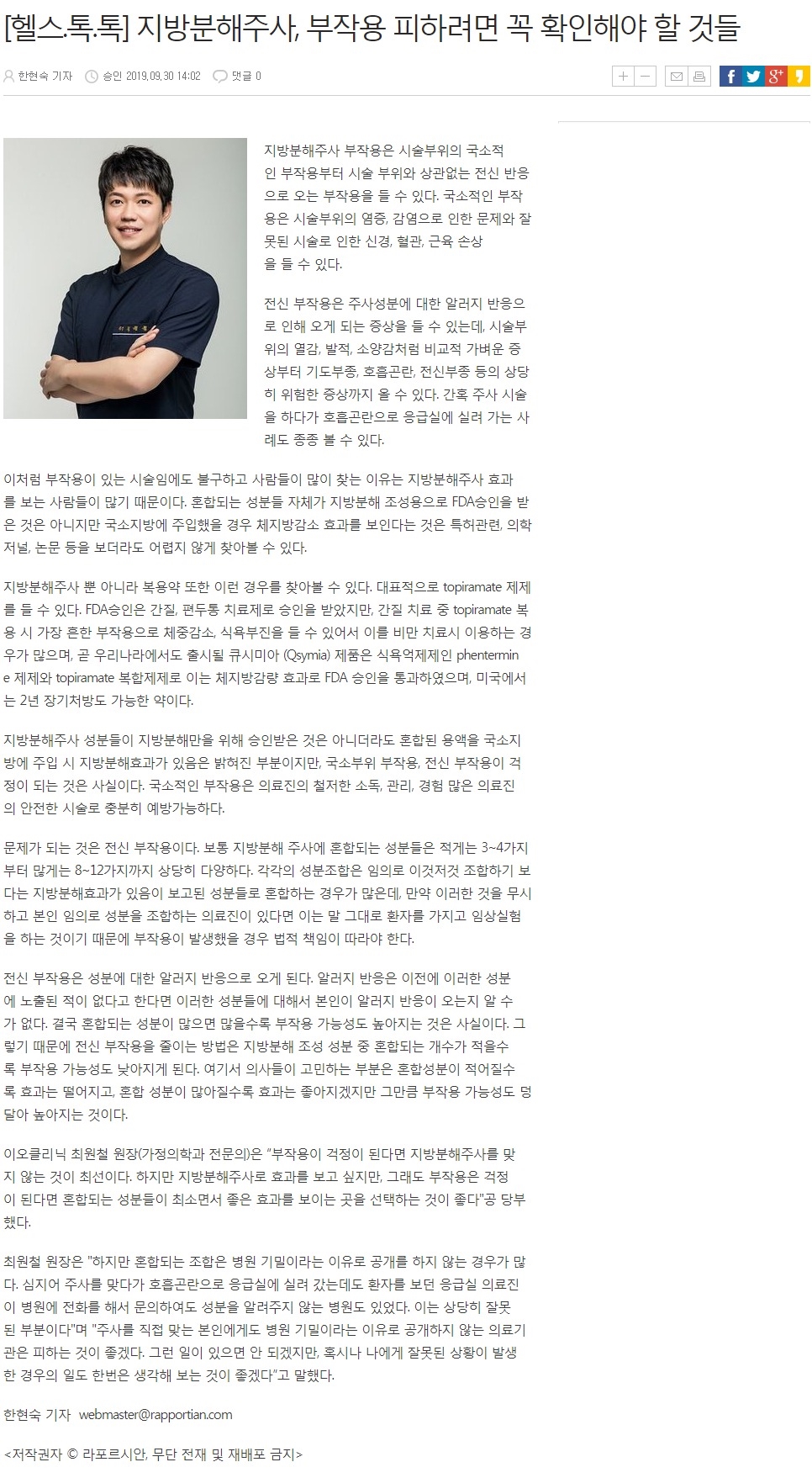 [언론보도] 지방분해주사, 부작용 피하려면 꼭 확인해야 할 것들