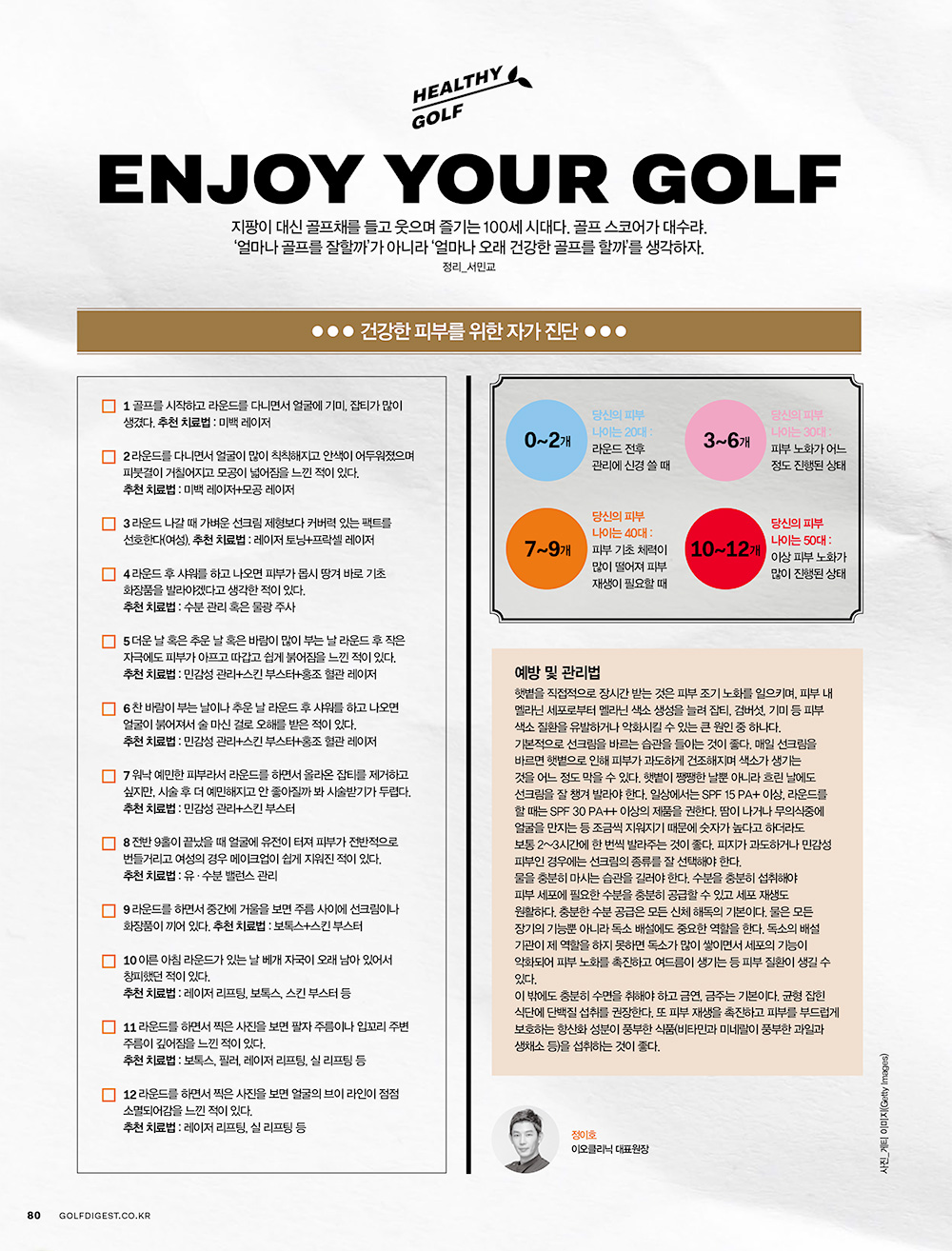 [매거진] 골프다이제스트 2022 01 _ 정이호 원장 자문 "건강한 피부를 위한 자가진단"