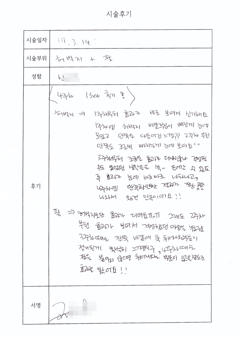시술부위 : 팔 + 허벅지