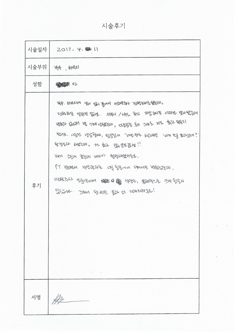 시술부위 : 팔 + 복부