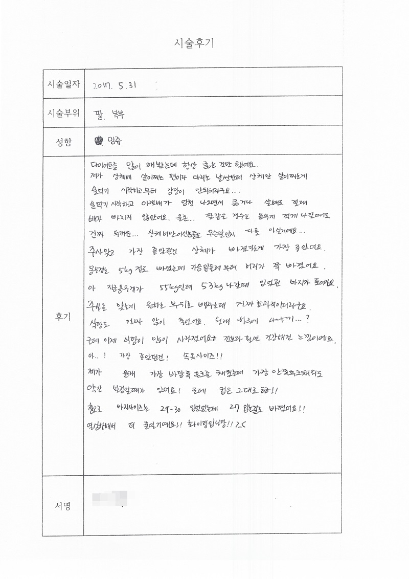 [이오팻주사] 밍쥬 님 / 팔+복부 / 5kg 감량