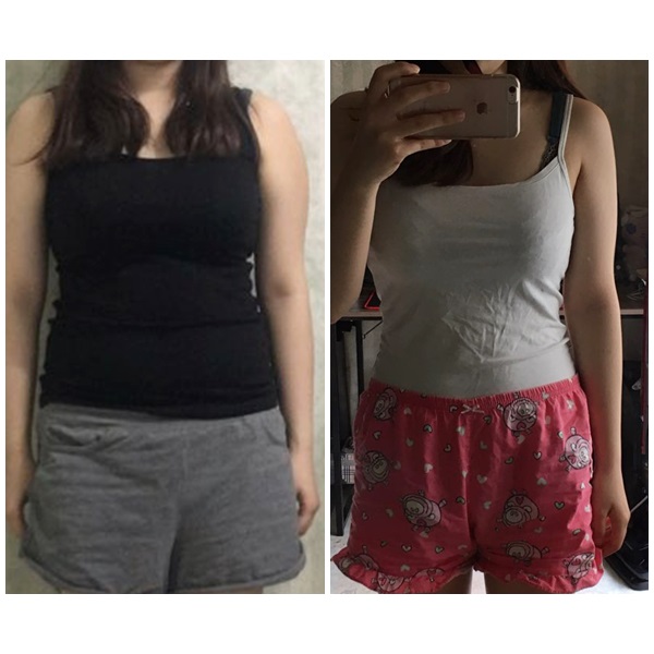 몸무게는 5kg 정도 빠졌는데 가슴 밑둘레 부터 허리가 쭉 빠졌어요.