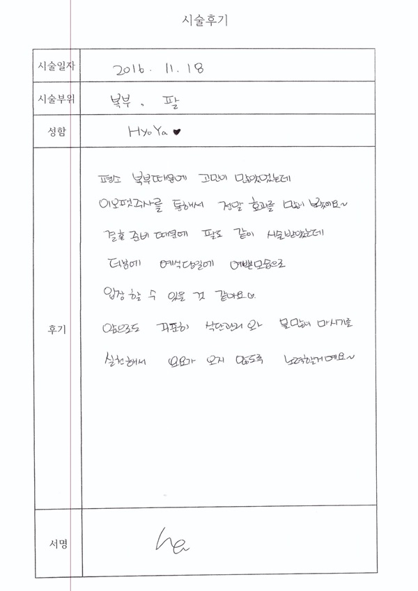 시술부위 : 팔 + 복부
